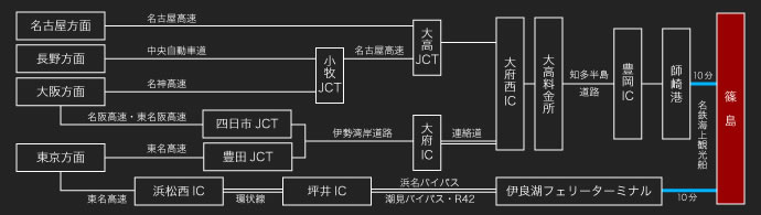 ●篠島へ渡る高速船・フェリーの運航状況等は、名鉄海上観光船をご覧ください。